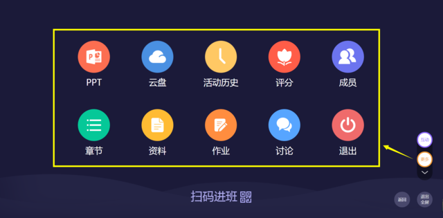 3.更多:PPT、云盘、活动历史、评分、成员、章节、资料、作业、讨论