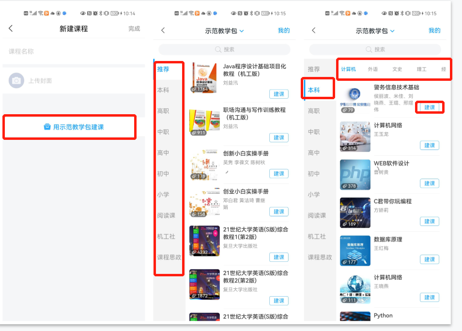 注:示范教学包目前仅支持手机端建课,建课后可登录pc端查看并编辑课程。