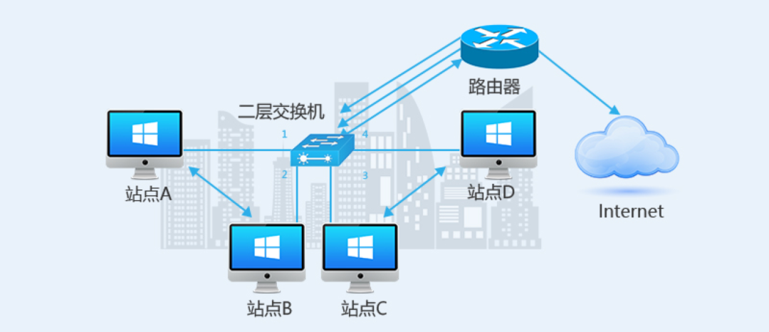 二层交换机可以充当网桥,将计算机网络系统的各种终端设备连接在一个平台上。它们能够非常快速且有效地将数据从LAN 网络的源端传输到目标端。