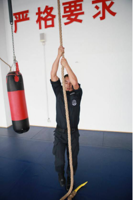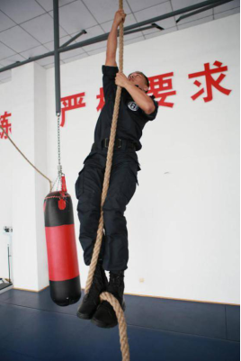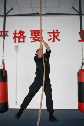 1.双手攀爬规范:直臂悬垂并靠拢紧握绳索,然后两臂用力牵引向上,左右手轮流向上,交替抓握绳索,从而达到身体上升的目的,注意身体要协调。维持平衡,避免过大幅度的摆动。