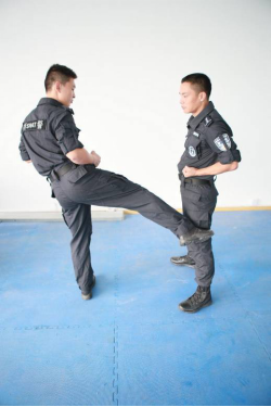 要求:双人相互练习时,攻击学员要掌握好动作的分寸和力度,被踢打学员精神要高度紧张,在受到攻击的瞬间,应绷紧腿部肌肉。练习的力度和次数要根据练习者的身体素质和承受能力而定。