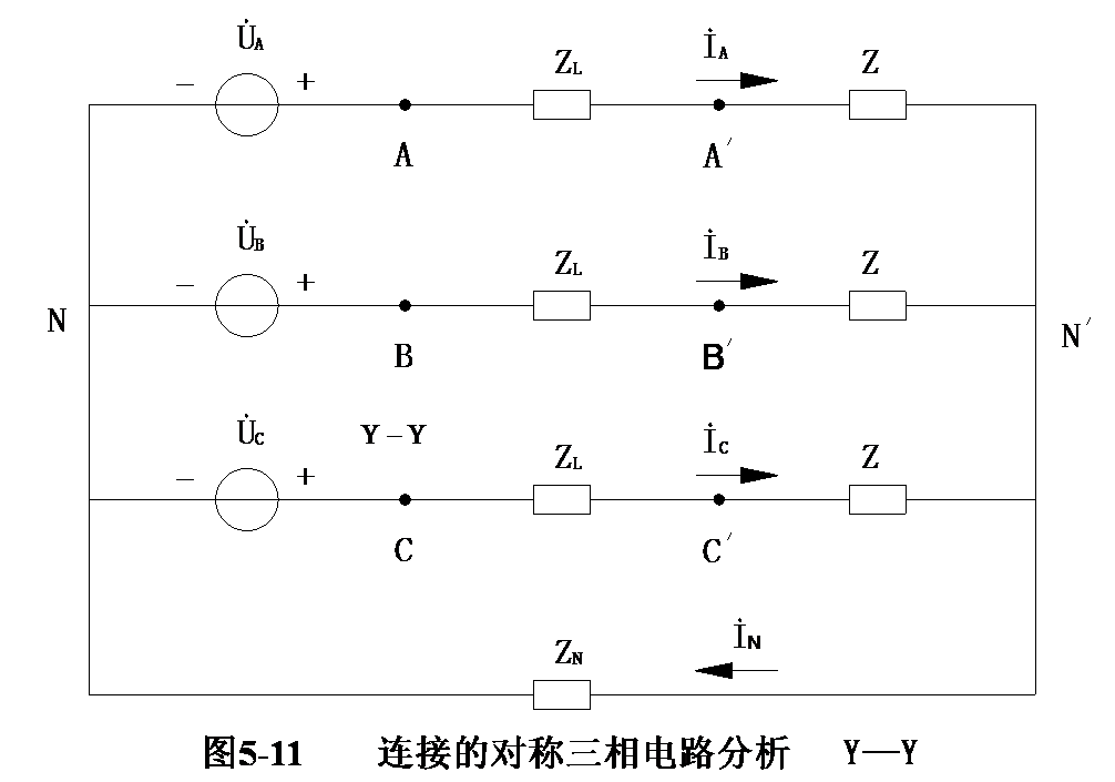 图5-11所示为Y—Y连接的对称三相电路,电源中点N与负载中点
