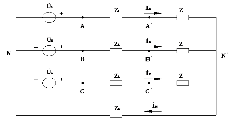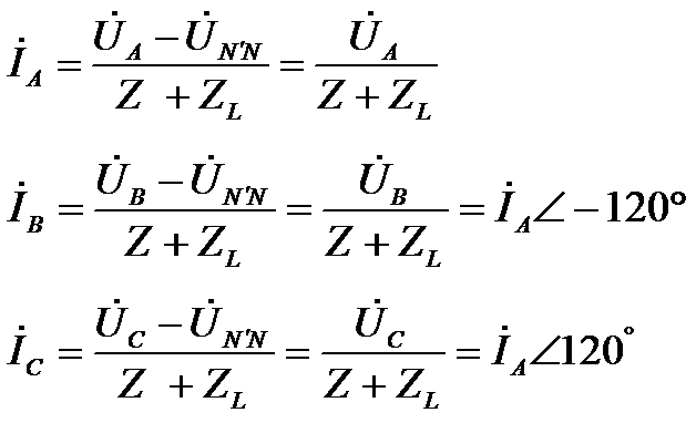 (2)所有负载中点和电源中点用假想的、阻抗为零的导线线连接起来。