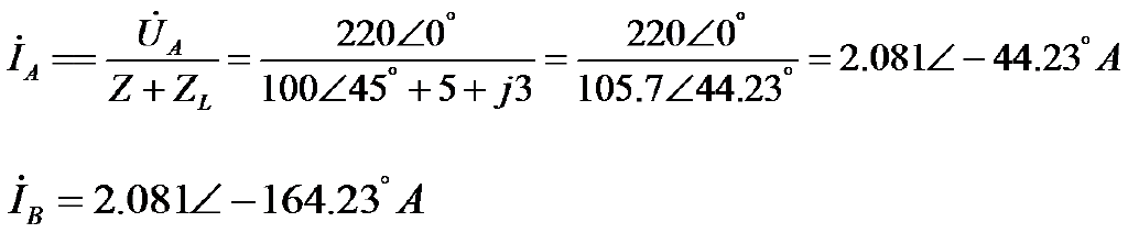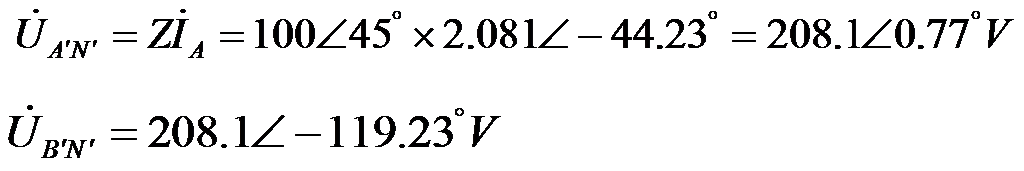 (4)根据对称性直接写出其他两相负载的相电压、相电流、线电流。