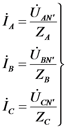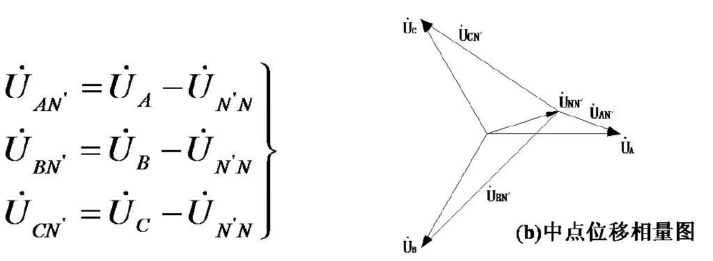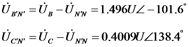 由相量图可知,负载的相电压不对称。这样会造成负载不能正常工作,甚至损坏设备。且中性点位移越大,负载相电压的不对称情况越严重。各相电流及线电流分别为