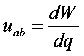 电路中a、b两点间的电压为单位正电荷在电场力的作用下由a点移动到b点时减少的电能,用符号表示,