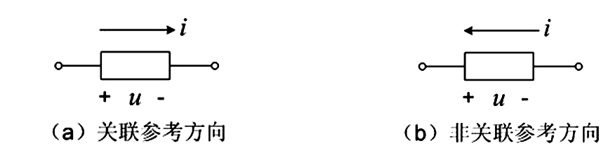 非关联参考方向:电压电流选择不一致的参考方向,如图1-7(b)所示。