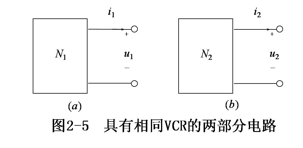 如果两个二端网络N1、N2的端口伏安关系完全相同,则称这两个二端网络是等效的,如图2-5所示。这个结论可以推广到二端口网络或多端口网络的情况。常用符号“