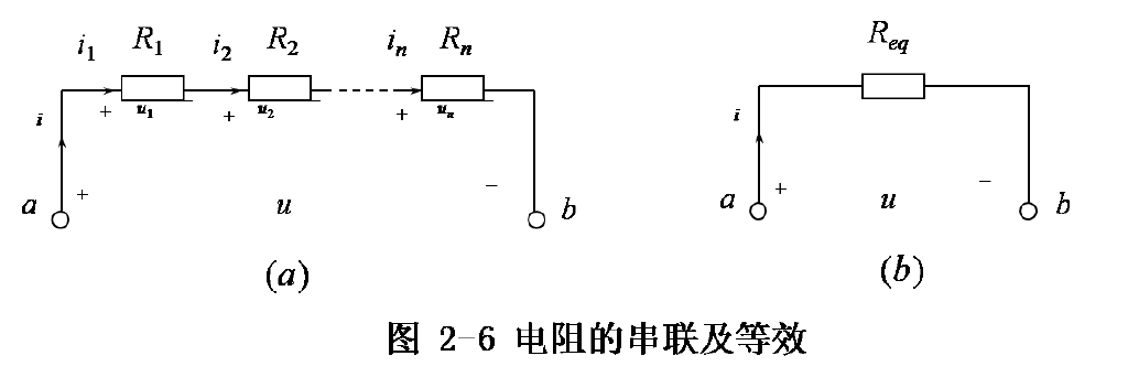 ② 串联电阻两端的总电压u等于各电阻上电压的代数和。