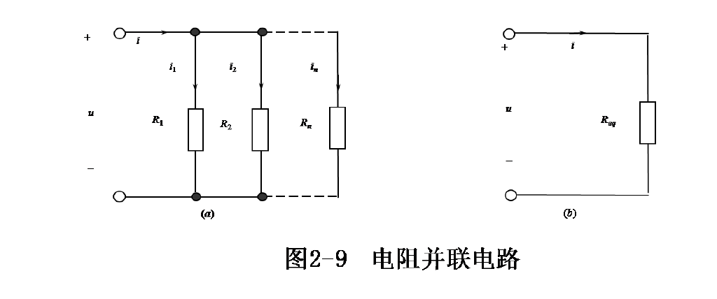 如图2-9(a)所示,若干电阻(电导)首端与首端、尾端与尾端分别联接在一起的联接方式称为电阻的并联。