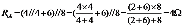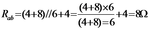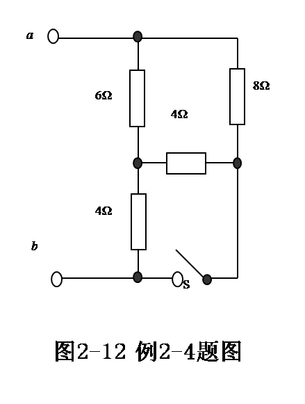 解:当开关S断开时,4Ω与8Ω串联后与6Ω并联,再与4Ω串联,所以