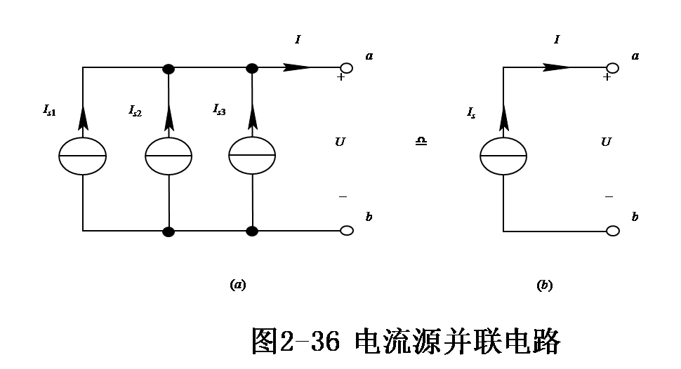 多个电流源并联时,其等效电流源的电流等于各个电流源电流的代数和。