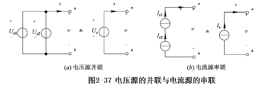 电流源串联同样必须满足大小相等、方向相同这一条件,否则将会违背KCL。