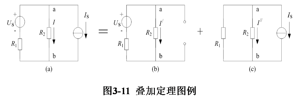 下面通过图3-10(a)中R2支路上的电流I为例对叠加定理加以说明。