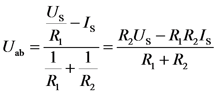 图3-11(a)是含有两个独立电源的线性电路,根据弥尔曼定理,这个电路两个节点间的电压为