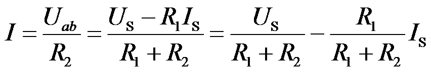 在电流源单独作用时,如图3-11(c)所示,R2支路上的电流为
