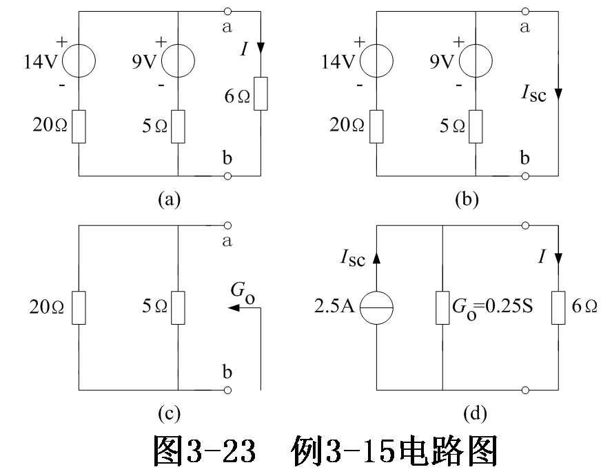 用诺顿定理求图3-23(a)所示电路中的电流I。