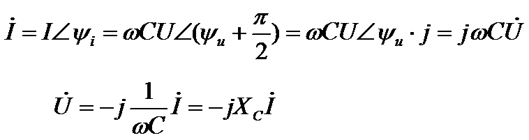 电容元件电压和电流相量关系: