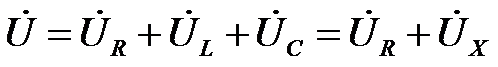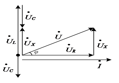 上式是R、L、C串联电路电压与电流关系的相量形式,也称为相量形式的欧姆定律。电压、电流相量图如图4-17(c)所示,