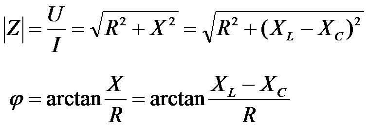 Z称为R、L、C串联电路的复阻抗,实部R称为电路的等效电阻,虚部 称为电路的等效电抗,简称电抗,为复阻抗的模称为阻抗,φ为阻抗角;复阻抗Z、阻抗和电抗X的单位都是Ω。电阻元件、电感元件、电容元件的复阻抗分别为