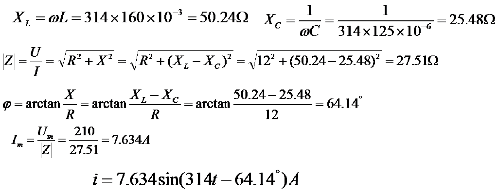 一个内阻R=12Ω、电感L=160mH的线圈 ,与的电容串联后,接到电压的电源上,求电路中的电流瞬时值表达式。