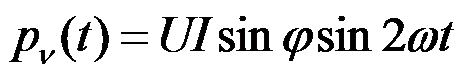 设φ>0,如图所示,p(t)是两倍于电压(或电流)频率且作周期性变化。因为储能元件的存在,电压、电流不同相,瞬时功率有时为正值,有时为负值,表示瞬时功率有时从外部接受能量,有时向外部发出能量。