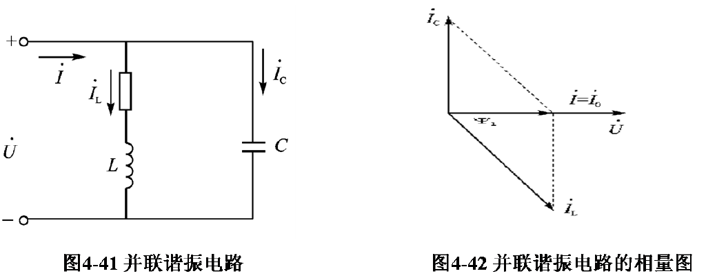 工程实际中广泛应用电感线圈和电容并联的谐振电路,其中电感线圈可以用电阻R和电感L串联电路模型来表示。在不考虑电容器的介质损耗时,该并联装置的电路模型如图4-41所示。