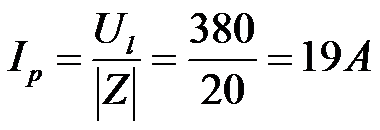 的三相电源上接入一个对称三角形连接负载,每相负载阻抗