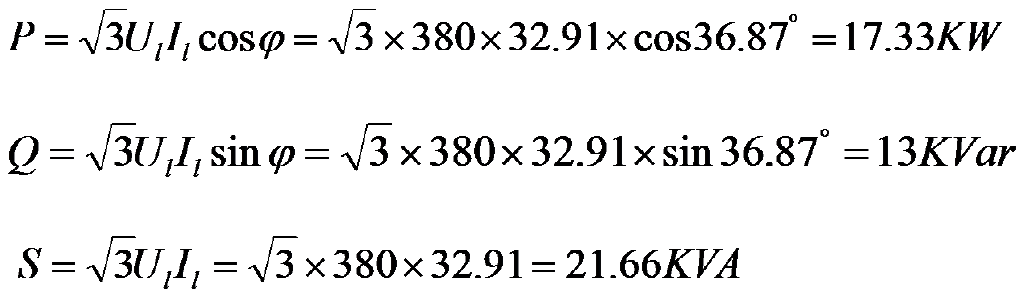 ,求:负载的相电流、线电流和三相有功功率P 、三相无功功率Q和三相视在功率S。