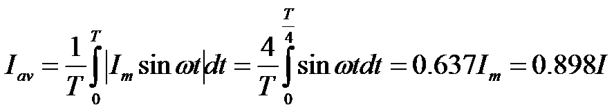 对于二极管整流电路来说,正弦电流平均值等同于“全波整流”后的平均值,上述平均值一般称为整流平均值。