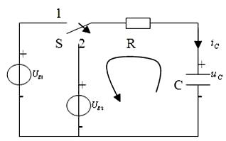 用经典法求解电路的全响应即直接在时域分析电流、电压等响应随时间的的变化,方法上是直接求描写电路的一阶线性非齐次方程。(Us2>Us1)