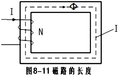 在磁路计算中,磁路的长度一般都取其平均长度,即中心线长度。如图8-11所示: