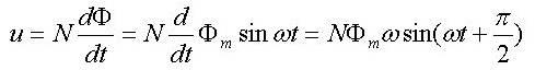 由此式可看出电压的相位比磁通超前90°,并得感应电压的有效值与主磁通的最大值的关系为