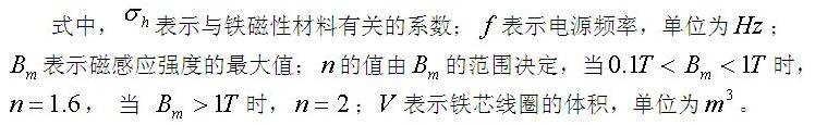 磁滞损耗是由于铁芯材料的磁滞性产生的。铁芯被反复磁化时,由于磁畴不断翻转相互摩擦生热有功率损耗,这就是磁滞损耗,用 Ph来表示,单位W。磁滞损耗与材料的磁滞回线面积成正比,实验证明磁滞损耗可按下式计算: