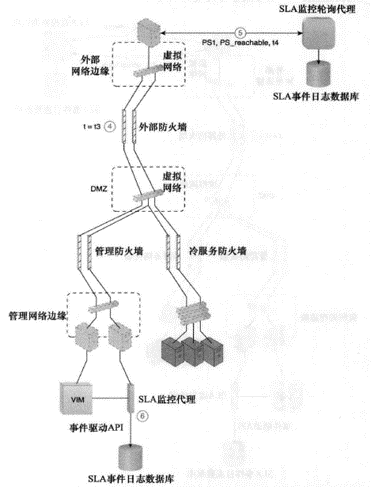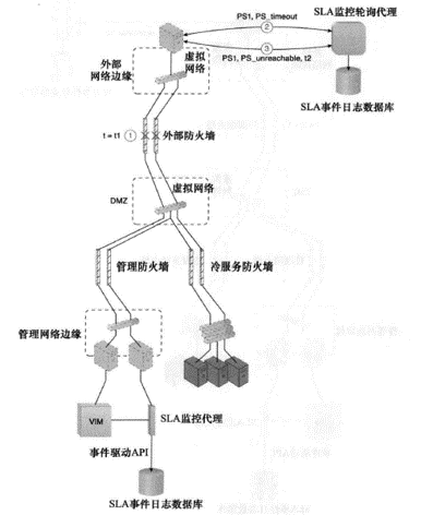 2、SLA监控代理:VIM的事件驱动API监控关键性事件,这些事件都有时间戳,并会被记录进SLA事件日志数据库,从而用来计算IT资源的失效时间。