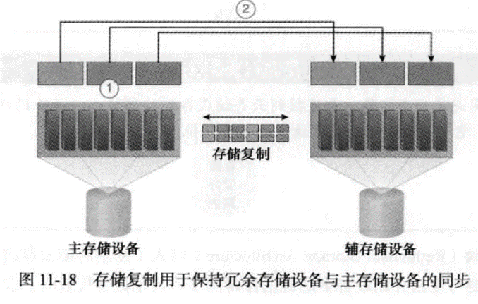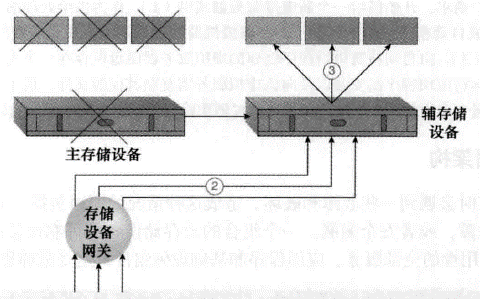 冗余存储架构引入复制的辅助云存储设备作为故障系统的一部分,它要与云存储设备中的数据保持同步。当主设备失效时,存储设备网关就把云用户请求转向辅助设备。