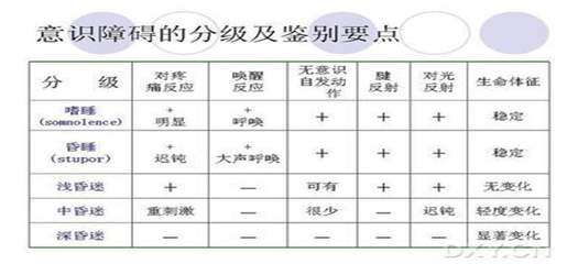 嗜睡、意识模糊、谵妄、昏睡、昏迷