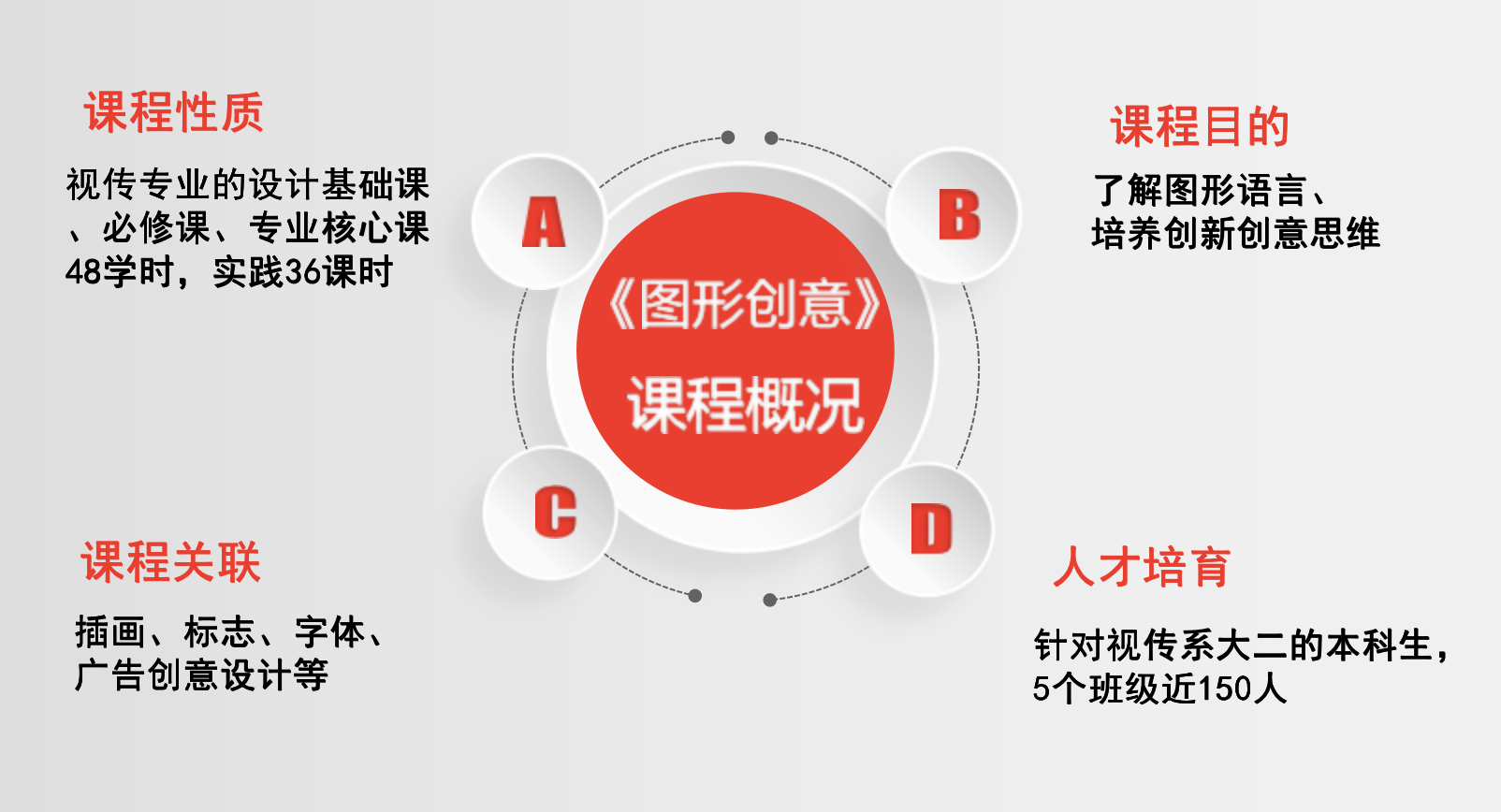 目的:① 通过理论传授使学生对图形创意设计有全新全面的认识和了解,并通过由浅入深的快题训练,使学生的创造性思维得以开发。