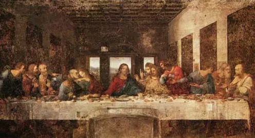 《最后的晚餐》是典型的对称式构图,画面中心人物耶稣,两侧人物呈对称分布,营造出庄严肃穆的氛围。