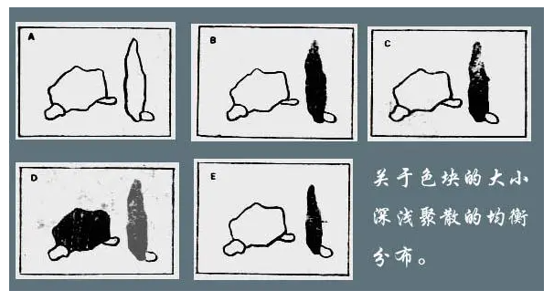 3. 元素的大小、聚散、深浅的分布对画面均衡的影响: 画面中元素的大小、聚散程度和深浅色调的分布,都会影响画面的均衡感。
