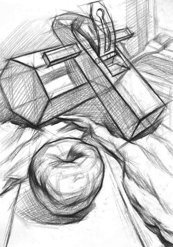 分析理解物体形象:通过对物体内部结构与外部形象的关系、明暗色调与形体体面的关系、透视与形体结构的关系等等的分析理解,深入认识物体的本质特征。