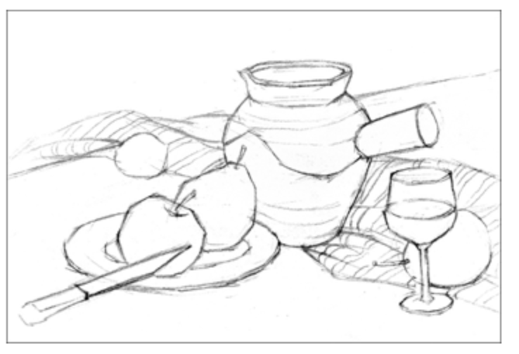 (练习)选择一组静物,分别运用透视观察、整体观察、概括观察、比较观察和本质观察的方法进行练习,体会不同观察方法在结构素描中的作用。