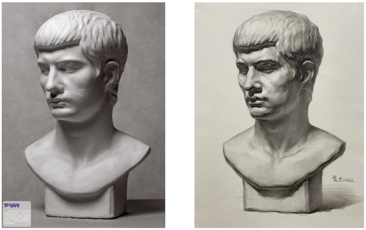 在准确造型的基础上,运用明暗调子塑造石膏像的体积感和空间感,是石膏像明暗素描的核心任务。