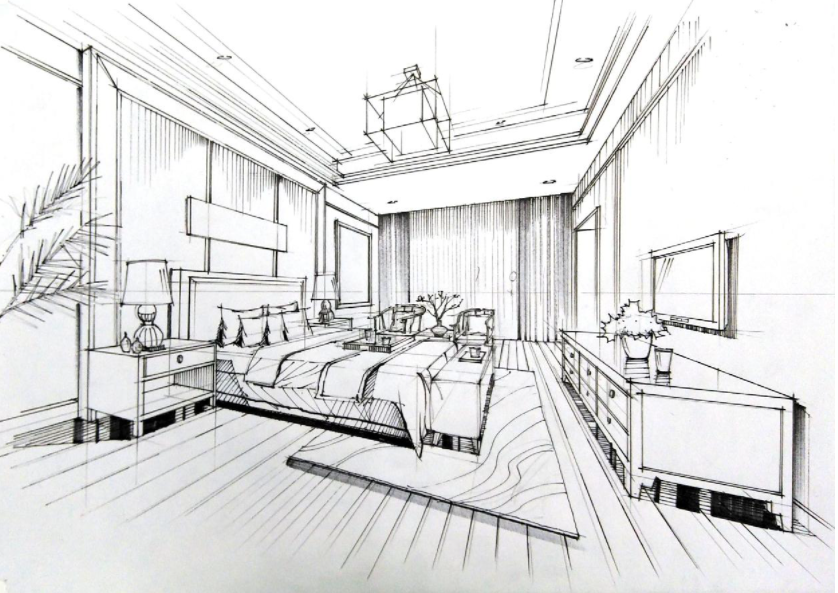 透视观察练习: 选择教室或宿舍的一个角落,观察其透视现象,并尝试用简单的线条和透视线概括其空间结构。