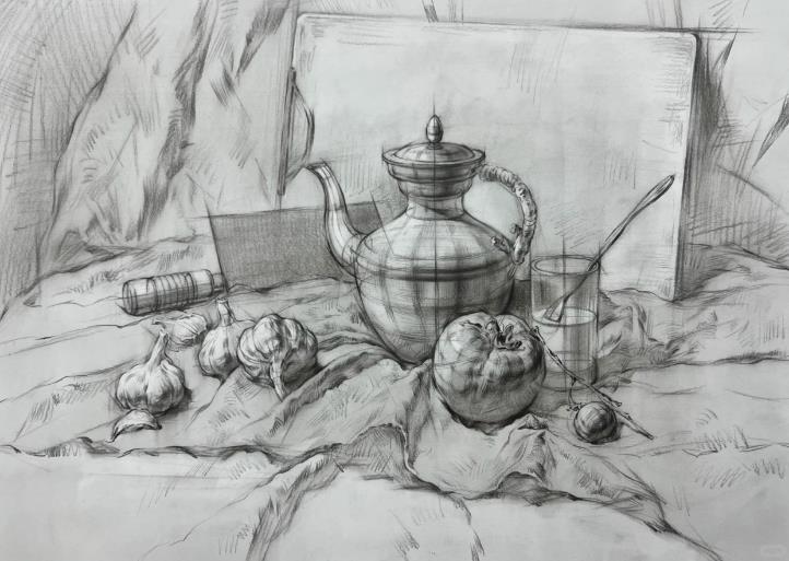 (练习)选择一组简单的静物,按照结构素描的作画步骤进行练习,体会每个步骤的要点和注意事项。