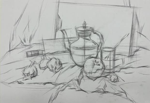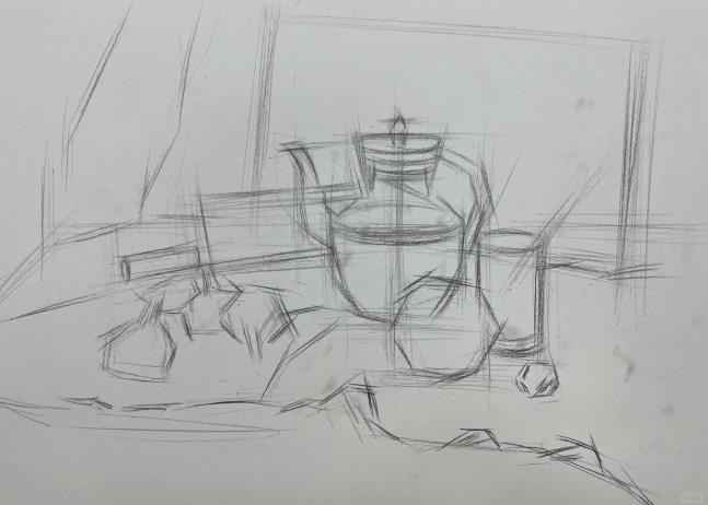 起稿阶段是结构素描的第一步,也是至关重要的一步。起稿的目的是确定画面的基本框架和物体的大致位置。
