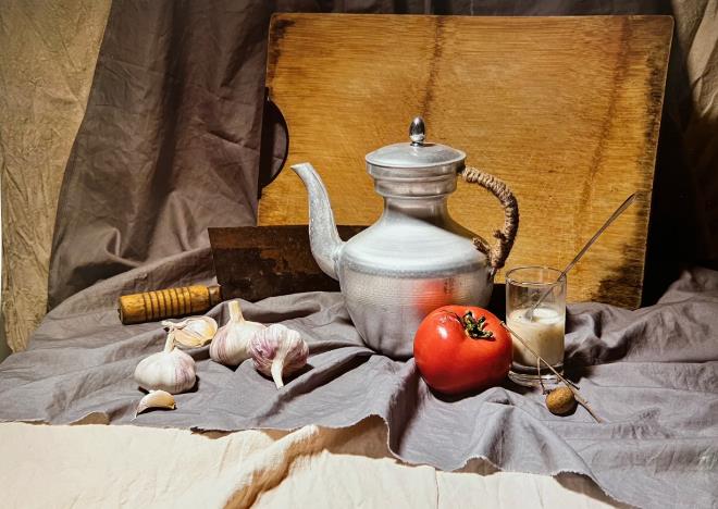 构图安排:根据静物组合的特点和画面表达的需要,进行构图安排,确定画面的构图形式和主体位置。
