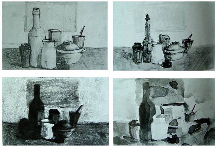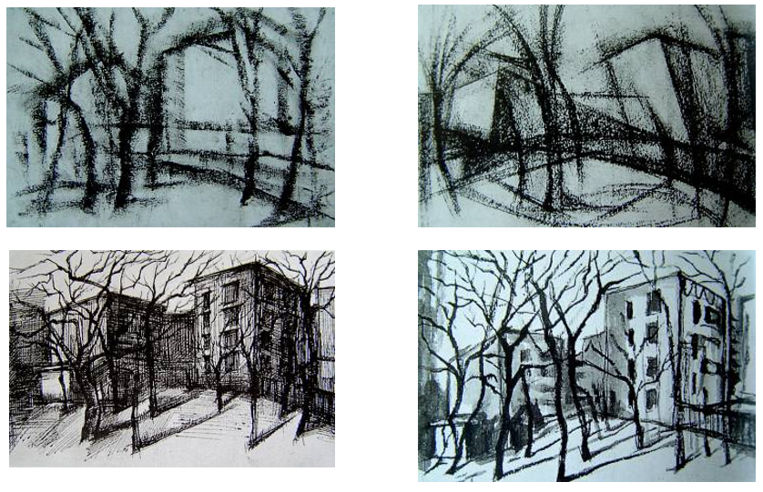 通过从具象到抽象的的训练,通过从具象图像逐步地演变到抽象图形的路径,可以使同学们初步涉及创意思维的模式及方向性,即极为明确的从一点到另一点的理性思维模式与方向性及不明确的从一点到多点的感性思维模式。