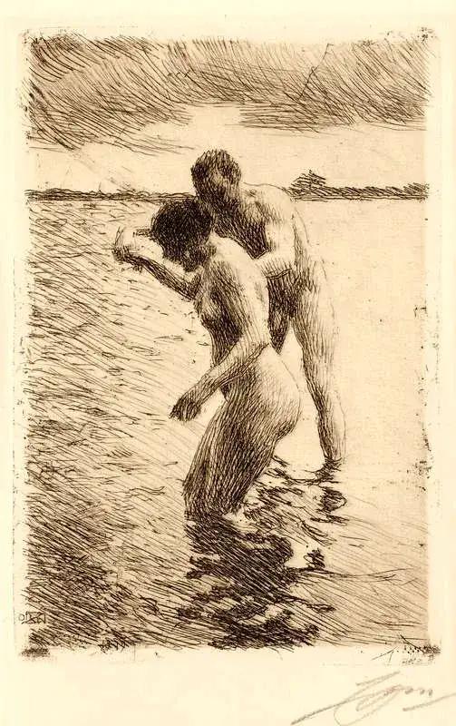 Adam and Eve Taking a Bath After Tilling the Land [瑞典]安德斯·佐恩