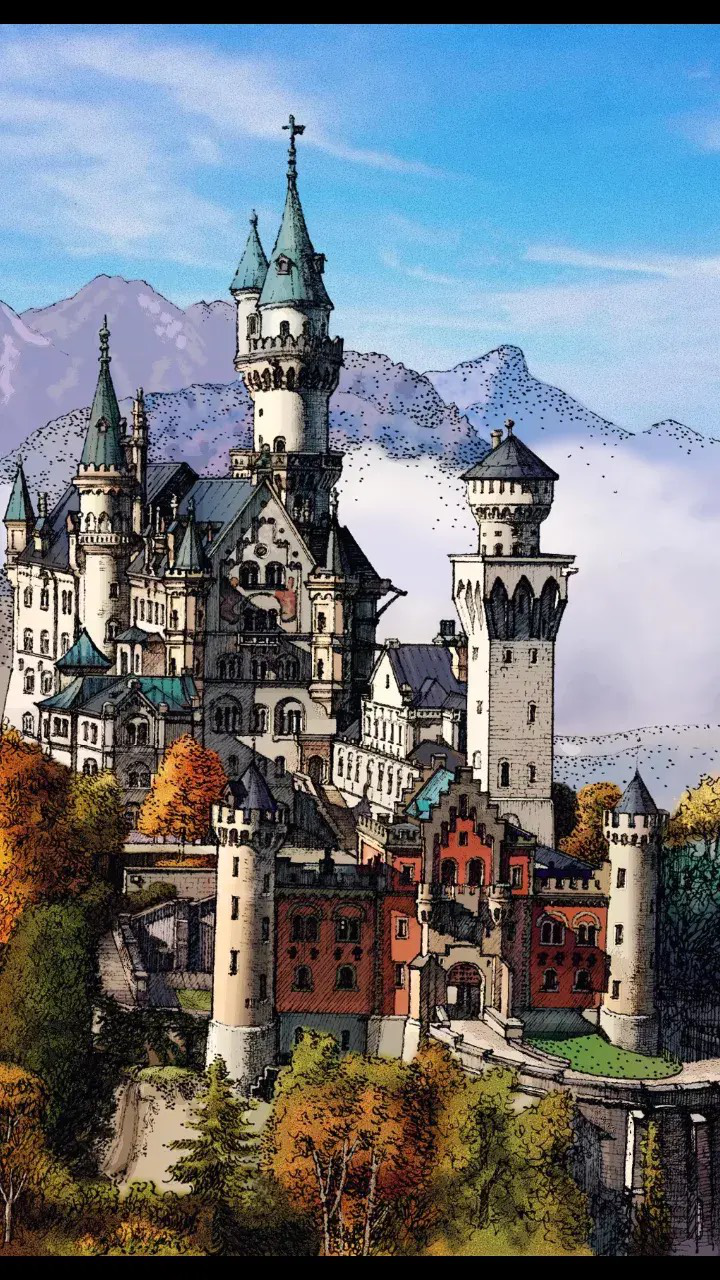 德国巴伐利亚新天鹅城堡(一位网友手绘)